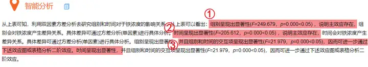 **效应量:**如果选中‘效应量’,则SPSSAU会在方差检验表格中输出偏Eta方(Partial η2),偏Eta方表示效应量大小时,通常情况下效应量小、中、大的区分临界点分别是:0.01,0.06和0.14;