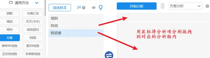 以SPSSAU为例:【通用方法】→【方差】