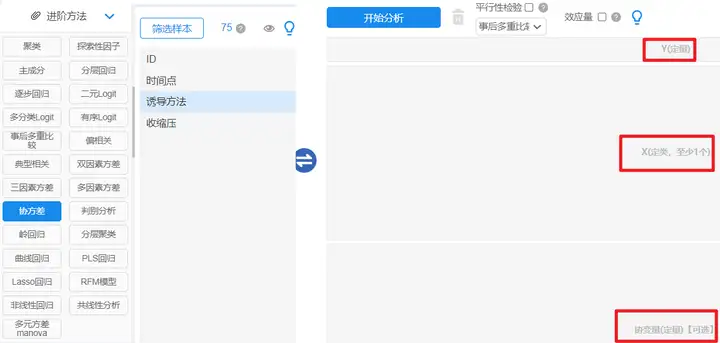 以SPSSAU为例:【进阶方法】→【协方差】;