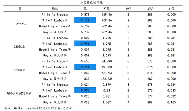 ①多元方差分析说明