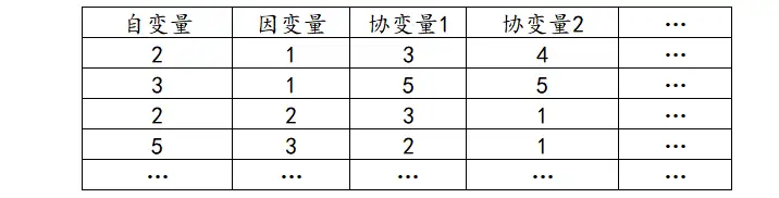 与协方差分析一致,如果有协变量,每个变量占一列。