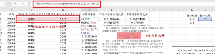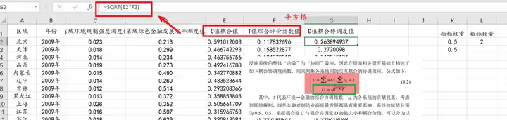 EXCEL进行耦合协调度: