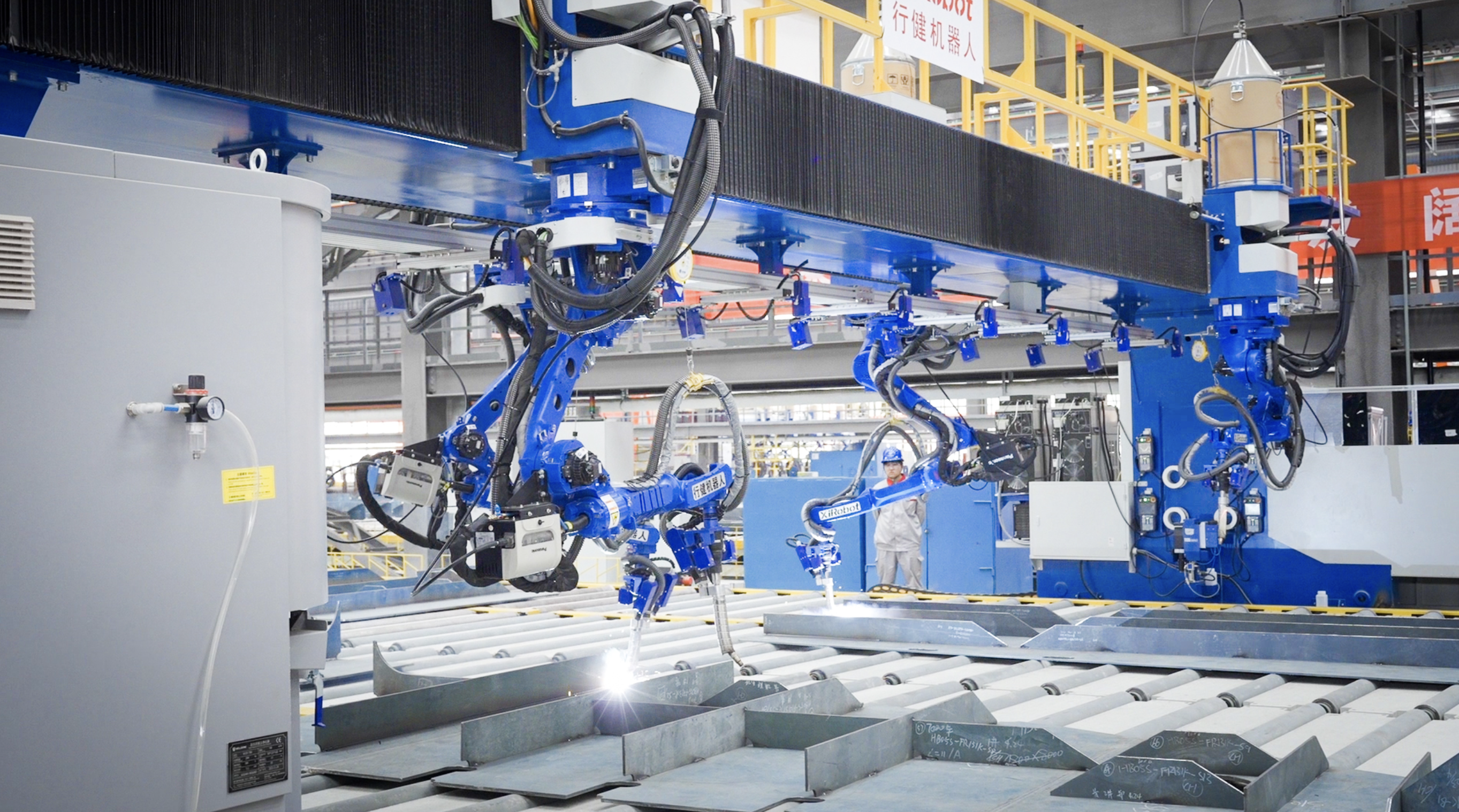 芜湖造船厂威海基地拥有8条全自动化生产线,行业内领先的智能切割下料车间、智能部件装焊车间,配置五大国内首次应用技术即全面印字喷码技术、8台机器人多枪头纵骨焊接技术、单龙门8台机器人T排焊接技术、自动下料分拣流水线、AGV自动驳运机器人,搭配最先进的动态视觉技术、薄板激光复合焊技术,可实现人机高度协同,整体节约人工约40%,智能中控系统自行调配厂内资源,车间自动化率可达80%。集成先进技术与智能化管理,结合物理安全防护措施,安全保障效率提升。
