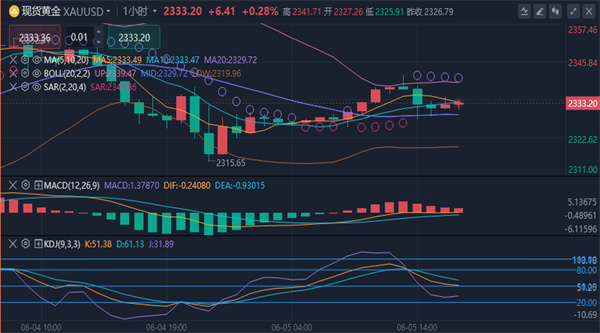 【黄金消息面分析】:周二(6月4日),黄金下跌超过1%,至每盎司2,327.68美元,盘中最低跌至2315.56美元/盎司。黄金一反周一升势出现大幅下跌,原因是美元在本周晚些时候美国就业数据公布前趋于稳定,令周一曾回升的黄金在非农数据公布前出现较大幅度的获利回吐,迫使黄金回到两周来的低点以等待就业数据的揭晓。因该数据可能为美联储的利率策略定下基调。