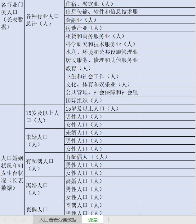 表6各行业门类人口(长表数据)