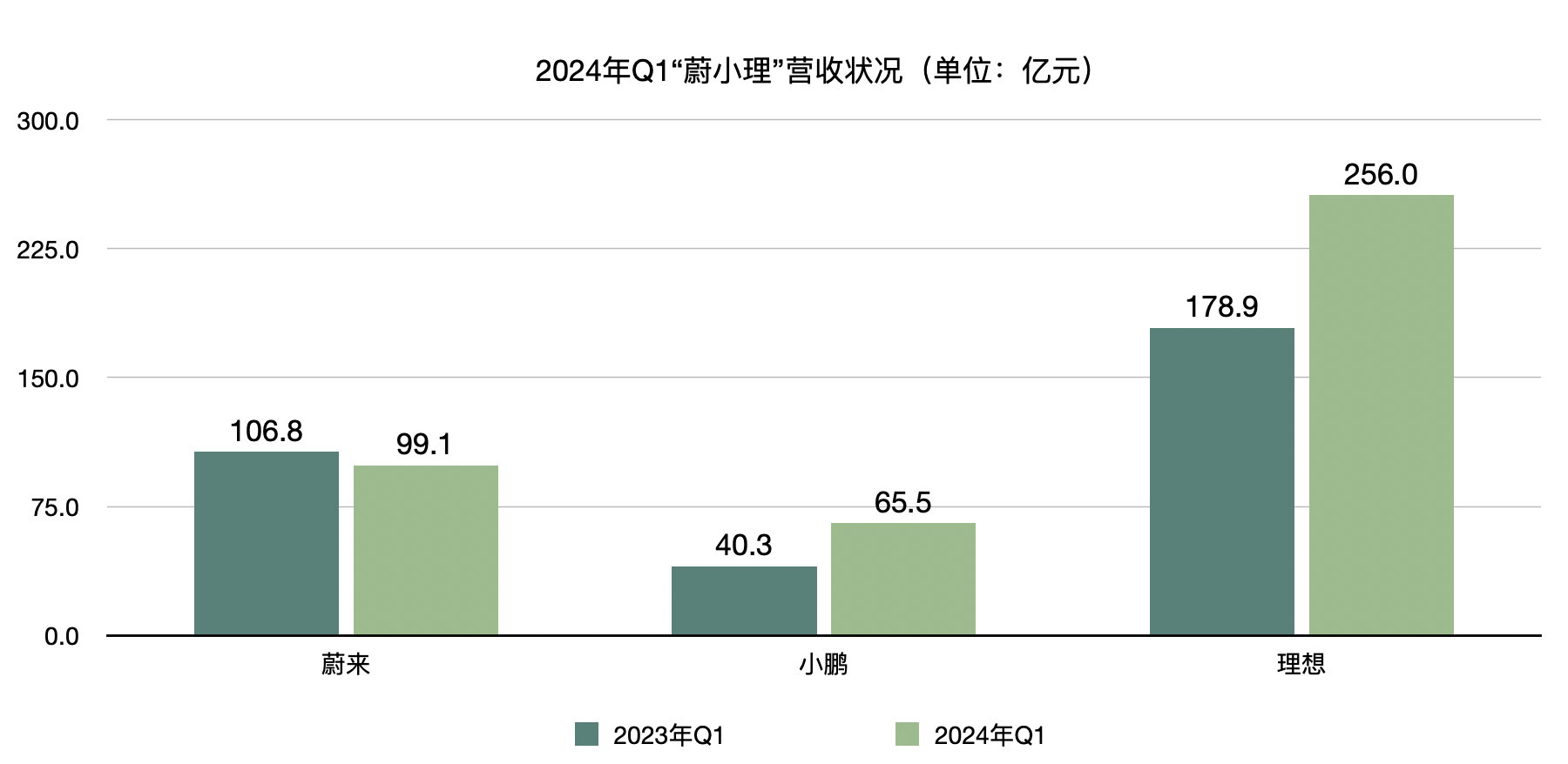 值得一提的是,在终端提供优惠措施的同时,除了蔚来有些下滑,理想汽车和小鹏汽车在一季度的收入都呈现出向好趋势。数据显示,理想汽车和小鹏汽车一季度营收分别为256亿元和65.5亿元,同比分别增长36.4%和62.3%。蔚来同期营收则为99.1亿元,同比下降7.2%。