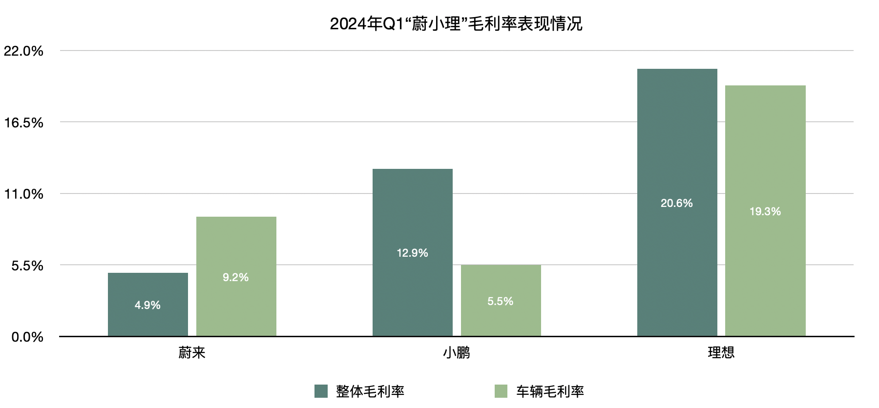在汽车毛利率方面,理想汽车当期为19.3%,而去年同期为19.8%;小鹏汽车为5.5%,而去年同期为2.5%;蔚来为9.2%,而去年同期为5.06%。不过,需要注意的是,理想汽车和蔚来当期的汽车毛利率均出现了环比下滑,只有小鹏汽车实现了环比增长。