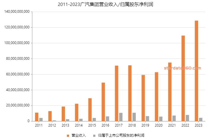 - 2011-2023广汽集团归属于上市公司股东的净利润