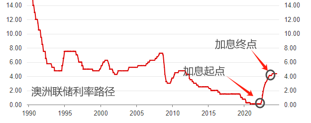 2022年5月份,澳洲联储启动疫情后的第一次加息,当时的月度CPI年率为6.1%(起点为负利率),2023年11月份最后一次加息,基准利率4.35%,当时的月度CPI年率为4.3%。澳洲联储加息期间,澳大利亚的通胀率出现“过山车”走势,最高点出现在2022年12月份,读数8.4%。一年半时间的加息,对于高通胀的抑制作用非常显著,如果4.35%的高利率维持下去,通胀率大概率将进一步走低。