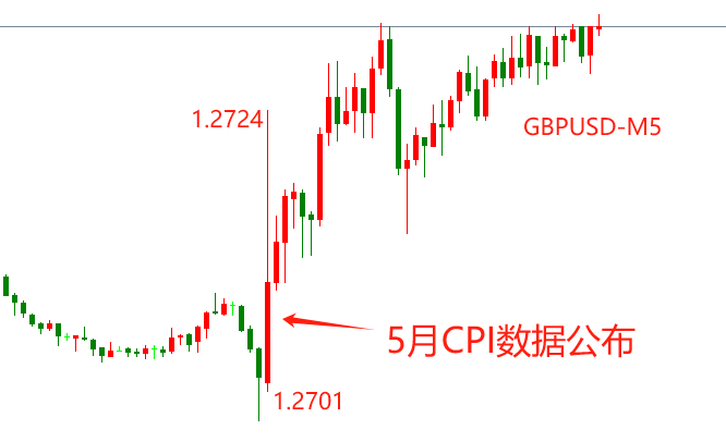 数据发布后,GBPUSD五分钟级别剧烈上涨,首个五分钟K线的最低点为1.2701,最高点为1.2724,波幅23基点。随后的一个小时,GBPUSD仍维持上涨状态。逻辑上讲,降息预期增强会导致本币贬值,为何英镑反而在数据公布之后升值?主要是预期值削弱了数据的影响力。核心CPI年率的预期值为3.5%,名义CPI年率的预期值为2%,两者均与公布值持平,意味着最新数据没能超预期,所以对GBPUSD产生反向提振作用。