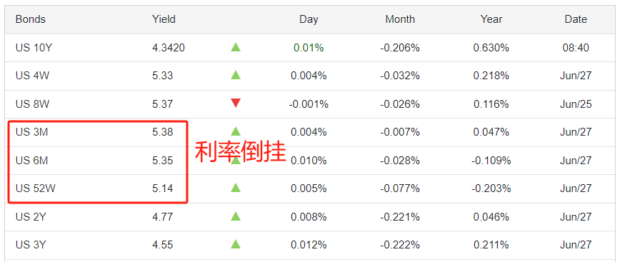 债市市场看,美国的3个月期国债利率与6个月期国债利率出现倒挂,倒挂3基点,不足一次降息幅度(25基点)。6个月期国债利率和52W国债利率同样倒挂,倒挂幅度21基点,仍小于一次降息的幅度。直至52W至2Y的国债利率倒挂,才能够覆盖一次降息的幅度。据此判断,美联储首次降息的时间点仍被大幅推迟,不太可能在三季度首次降息,美元指数强势状态仍能延续。