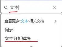 在SPSSAU主系统左上角处进行搜索,比如搜索‘文本’二字时,下拉中会提示文本分析模块,当然搜索其它的潜在关键词,比如情感分析、LDA、文本聚类等均可。