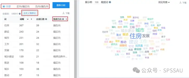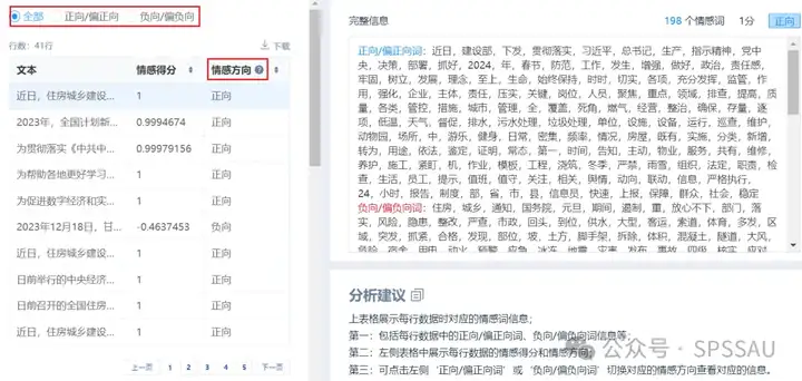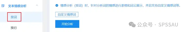 SPSSAU共提供两种方式的情感分析,分别是按词情感分析和按行情感分析。