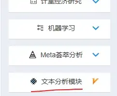 通过SPSSAU主系统左侧仪表盘点击‘文本分析模块’进入。