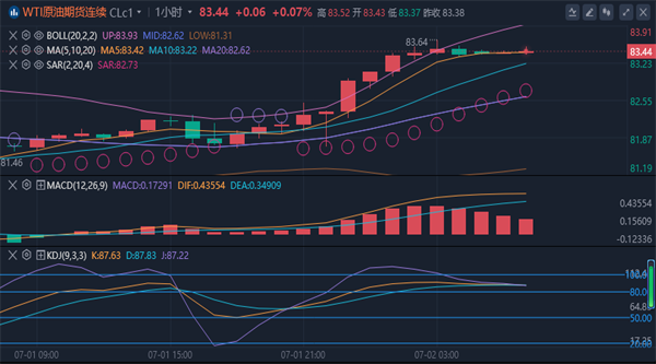 【原油技术面分析】:原油周一出现了震荡上涨走势,回撤低多点在81.6一线企稳拉升,触及最高点给到83.6一带承压,回撤83.431美元一带,收盘在83.302美元/桶。周线级别收录一根小阳线,延续前一周向上反弹的走势,本周依旧关注多头动能推动效果。四小时级别上看,原油最低给到了80.42美元/桶,后行情整理,原油最终收线在了81.78美元/桶,后行情以一根上影线较长的倒锤头形态收线,而这样的形态收尾后,原油今日维持震荡向上预期,原油前期桎梏后出现了高位调整,后市有望出现多头延续。综合来看,原油今日操作思路上建议以回踩低多为主,反弹高空为辅,上方短期关注84.5-85.0一线阻力,下方短期关注82.2-81.7一线支撑。