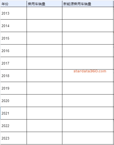 [公开数据] 2013-2023年乘用车/新能源乘用车销量 |