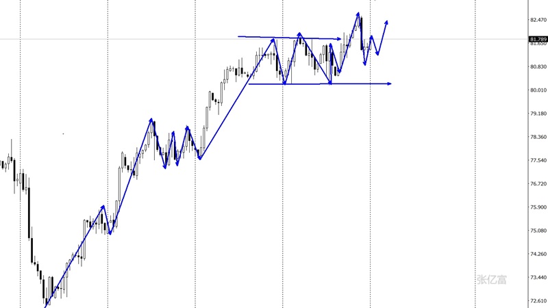 昨日美原油市场早盘开盘在83.76美元/桶,后行情先回落,日线最低给到了83.18美元/桶,后行情强势拉升,日线最高触及到了84.44的后日线收线,日线以一根下影线很长的中阳线收线,而这样的形态收尾后,原油延续上涨趋势。原油4小时图以中轨做为支撑震荡上扬。前一日回踩低点与突破口82.40做为短期多头整理防守点,此位之上继续保持看涨趋势。综合以上分析,张亿富认为:原油震荡上涨,多头趋势占据主动,今日操作上考虑回撤布局多单为主,高空为辅,上方关注85.0-85.5美元阻力,下方关注83.5-82.9美元/桶支撑。