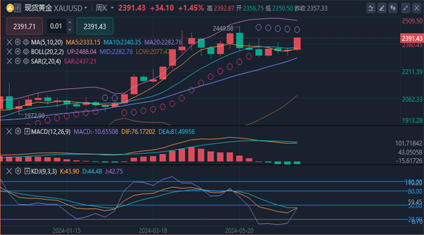 【黄金技术面分析】:操作来说,而就短线的话,黄金上方趋势线阻力也都已经被突破,多头已无明显压力,可以先看前高下跌位置2368,而后市大方向还需要本周重要数据的引导,破位之前是可以轻仓尝试入场空,多单黄金继续关注下方4小时中轨的支撑区域,回调企稳后继续做多,也就是2370附近。综合来看,黄金下周短线操作思路上建议回调做多为主,反弹做空为辅,上方短期重点关注2405-2410一线阻力,下方短期重点关注2375-2370一线支撑。