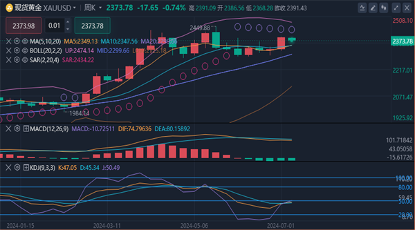 【黄金消息面分析】:在金融市场的浪潮中,黄金一直以其独特的价值和稳定性吸引着投资者的目光。7月8日,黄金市场再次成为焦点,现货金价在欧市早盘出现显著回调,从上周五的高点2393美元/盎司回落至2379美元/盎司附近,日内跌幅超过12美元。这一波动无疑为市场交易者提供了新的机遇与挑战。