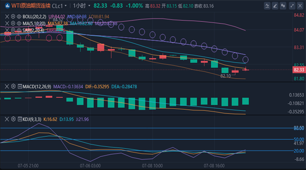 【原油技术面分析】:从原油近期的走势来看,近期的行情一直维持于80.2-85附近高位区间反复整理,行情区间与冯喜运在前面策略区间中一致,至此已经站上84美元,从日线图来来看,油价自6月5日以来处于单边上涨走势,短期均线多头排列,MACD金叉良好运行,布林带开口,多头仍占据明显上风,之前尽管受到4月26日高点84.5附近阻力压制,但油价回调力度较小,都没有跌破82.6的5,10日均线支撑,从而再次出现反弹,多头测试高点,暗示后市仍有计划继续震荡走高,如果顶破84.5附近位置,则有望进一步试探4月19日高点86.26附近位置阻力。综合来看,原油今日操作思路上冯喜运建议以反弹高空为主,回踩低多为辅,上方短期关注83.8-84.3一线阻力,下方短期关注81.5-81.0一线支撑。
