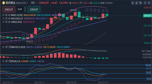 【黄金消息面分析】:周二(7月9日)亚市尾盘,现货黄金维持日内反弹走势,目前金价位于2363美元/盎司左右。FXStreet高级分析师Dhwani Mehta周二最新撰文,对金价技术走势进行分析和预测。Mehta写道,金价在周一从六周高点2393美元/盎司回落后,周二亚洲交易时段反弹。