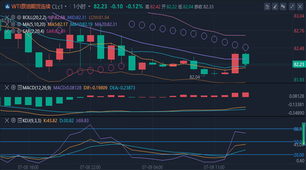 【原油技术面分析】:原油市场昨日低开在83.18美元/桶,后行情回补缺口给出83.43美元/桶,后行情回落,日线最低给到了82.19美元/桶,后行情整理,周线最终收线在了82.42美元/桶,后行情以一根上影线稍长于下影线的大阴线收线,而这样的形态收尾后,原油延续调整中。原油四小时级别看,中期走势反复震荡向上,周内再创新高,但创新高后的连续性和力度发生变化。85附近高位对油价存在一定的阻力。中期走势上涨不变,继续呈反复性,周一走势延续震荡下落,油价在通道下沿无反弹迹象,形成次要节奏。客观上涨趋势进入转换趋势,且空头动能表现充盈。综合以上分析:原油低位超卖运行中,寻觅支撑,冲高不强必是下跌,今日操作上考虑反弹做空为主,低多为辅,上方关注83.0-84.0阻力,下方关注81.6-81.0支撑。