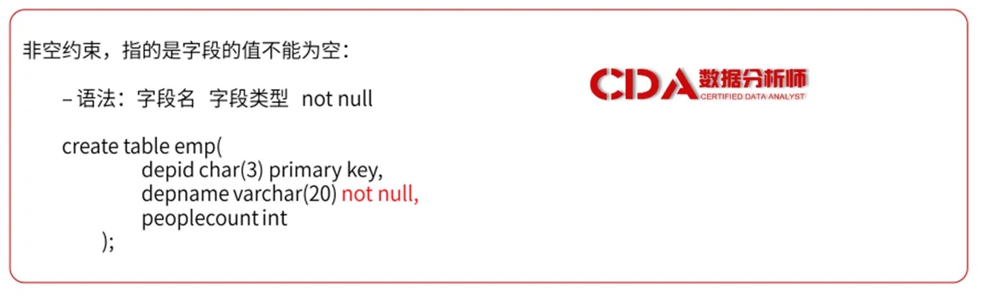 非空约束是一种简单的约束条件,它要求表中的某个字段在插入或更新记录时不能为空。非空约束保证了字段值的完整性,使得数据库中的每一条记录都具备完整的信息。