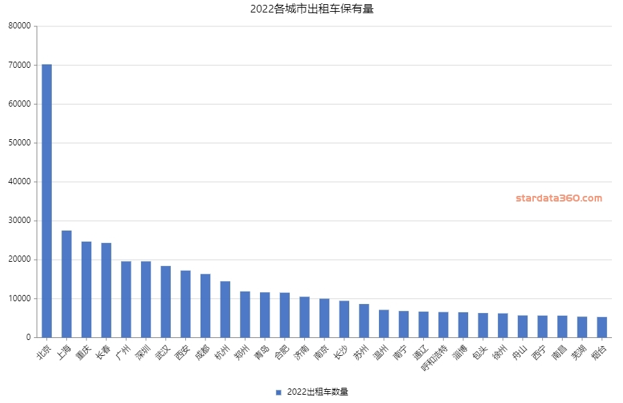 该数据为我们挨个通过统计局整理的,16-22有连续数据的城市不多,只有139个,另外不同城市口径可能会稍有差异同时我们也有另外一份各城市的出租车保有量,是通过国家统计局年鉴统一整理的,这个共有274个城市都有连续数据,来源统一(国家统计局),所以口径上也更加容易对比,价格也比这个稍高如果需要这个可联系客服微信:stardata3602022各城市出租车保有量