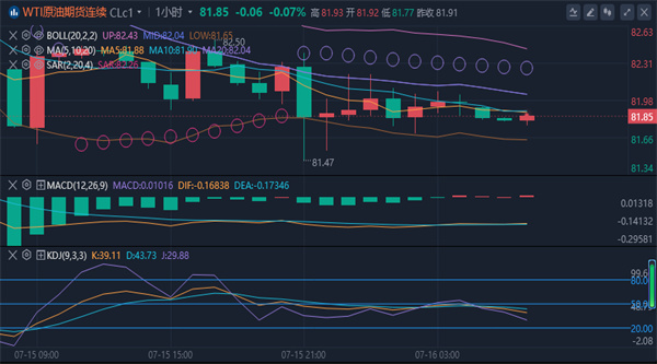 【原油消息面分析】:周一(7月15日)欧盘时段,由于相互矛盾的市场力量开始发挥作用,油价保持在低位。美元走强和对需求的担忧造成了下行压力,欧佩克+供应限制提供了支撑。