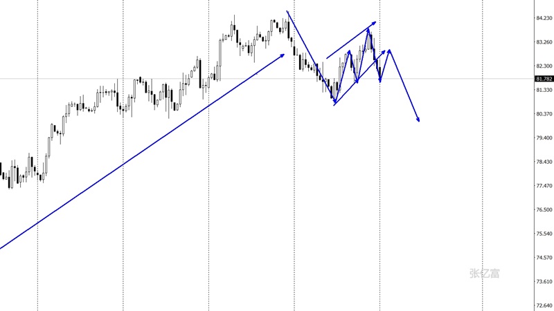昨日美原油市场早盘开盘在81.91美元/桶,后行情小幅拉升给出81.92美元/桶,后行情震荡回落,日线最低给到了本轮上行斐波那契的38.2支撑和日线级别布林下轨80.19美元/桶,后行情整理,日线最终收线在了80.76美元/桶,后行情以一根下影线很长的大阴线收线,而这样的形态收尾后,原油延续承压中。原油4小时图进行回撤修正当中,二次探高回落破低延续回落,目前4小时图以中轨做为阻力点震荡回落,短线先依托中轨81.3做阻力先行看一波回撤。综合以上分析,张亿富认为:原油承压下行考验支撑,但是底部形态需要考验,今日操作上考虑回撤布局多单为主,高空为辅,上方关注81.3-82.0美元阻力,下方关注79.8-79.3美元支撑。
