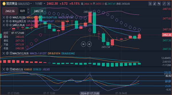【黄金消息面分析】:周三(7月17日),世界黄金协会 (WGC) 北美首席市场策略师 Joe Cavatoni 表示,全球黄金 ETF 开始应对地缘政治风险,但金价的最大驱动力将是各国央行的降息。Cavatoni 在最近接受嘉信理财网络采访时表示,随着金价再次突破,世界黄金协会正在密切关注全球 ETF 流动情况,但黄金牛市的真正驱动力将是美联储开始降息。