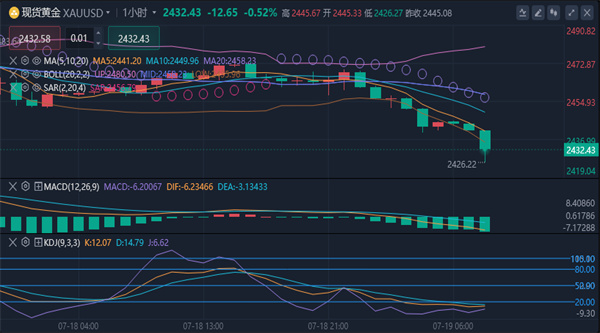 【黄金消息面分析】:周五(7月19日)亚市早盘,现货黄金小幅走弱,目前交投于2428.13美元/盎司附近。尽管美联储9月份将预期仍给金价提供支撑,但美元指数从近四个月反弹,令金价承压,现货黄金周四下跌0.55%,收报2445.07美元/盎司,为连续两个交易日下跌,继续远离周三创下的历史高点,投资者需要警惕金价短线震荡筑顶的风险。