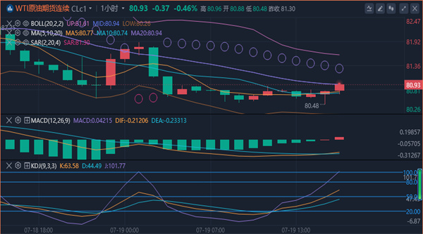 【原油技术面分析】:国际原油近期整理蓄势当中,此前从低点回升形态强势 连阳上升,上周五探高回落稍有停顿。短线进入震荡蓄势,结构上还是偏向上升,结合周线的一波连阳强势。带动短期均线震荡向上,日线和周线偏多,但短线有回踩蓄势的迹象。原油4小时图探高后承压震荡,目前还是处于上升台阶中运行,只是没能一步突破84.40高点延续上涨动能,短线进入震荡迂回蓄势当中,回撤仍要留意80.20的支撑防守,守住看震荡多头,跌破则先回踩寻求支撑启稳再重新回升。结构上来回切换,结合形态的转变灵活应对。综合来看,原油今日操作思路上建议以回踩低多为主,反弹高空为辅,上方短期关注83.7-84.2一线阻力,下方短期关注81.0-80.5一线支撑。