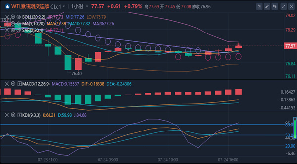 【原油消息面分析】:在经历了连续三个交易日的跌势后,原油市场终于迎来了一丝曙光。周三(7月24日),油价反弹,布伦特9月原油期货和美国西德克萨斯中质油(WTI)9月期货均上涨约0.5%。这一反弹背后,是美国原油库存的下降和加拿大野火带来的供应风险。