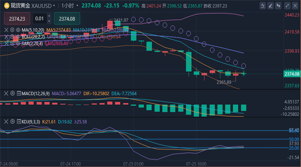 【黄金消息面分析】:周三(7月24日),现货金收盘报每盎司2397.58美元,下跌0.52%,盘中一度高见2431.89美元。虽然要面对本周随后一些重要数据的考验,黄金仍稳固在2400美元附近。