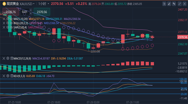 【黄金消息面分析】:周四(7月25日),现货金下跌1.8%,至每盎司2,355.22美元,触及7月9日以来最低点。当天美国的经济数据触发黄金获利了结行情,导致金价深度回调。交易商在等待美国周五将公布的美国 PCE 数据,以明了美联储何时降息。