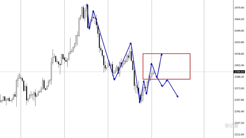 上周黄金市场周初开盘在2401.7美元/盎司,后行情先拉升,周线最高触及到了2432美元/盎司,后行情强势回落,周线最低给到了2352.5美元/盎司,后行情尾盘拉升,周线最终收线在了2388.2美元/盎司,周线以一根下影线长于上影线的纺锤形态收线,而这样的形态收尾后,黄金依旧是一个高位横盘走势中。4小时图低位反弹逼近下行趋势线,亚盘关注2400-2405间的压制,此位决定强弱转换的关键位置,是继续调整还是转换震荡上升?下行趋势线守住则继续看回调,目前短线还是受压。综合以上分析,张亿富认为:黄金十字星收尾后依旧承压,今日操作上考虑反弹做空为主,低多为辅,上方关注2403-2415美元阻力,下方关注2381-2375美元支撑。