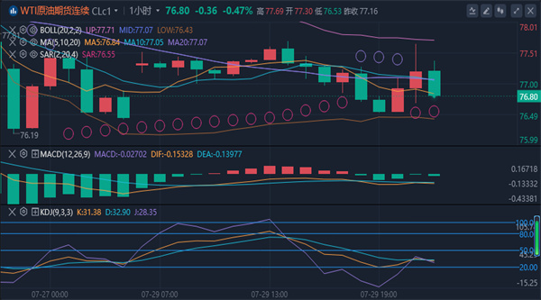 【原油消息面分析】:周一(7月29日)欧盘时段,WTI原油期货连续5个交易日保持区间波动,呈下降趋势。交易员们正在权衡影响全球石油格局的多种因素。在强劲的经济增长和美联储可能降息的推动下,美国需求强劲的前景被全球部分地区需求疲软的迹象所抵消。