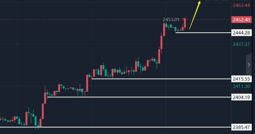 综上所述,考虑到经济数据的变化、美联储声明的调整以及技术面的强势表现,我们认为黄金市场在未来一段时间内仍将保持上涨趋势。对于今日的操作策略,文承凯建议黄金在2440-44附近看涨,目标上看2460-70,止损2435;
