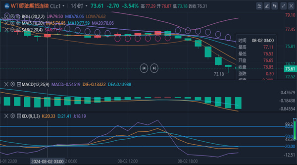【原油消息面分析】:WTI原油期货上涨,从之前的下跌中反弹,支撑位在75.77美元,阻力位在77.96美元。在全球需求疲软和中东紧张局势的推动下,油价上涨,但面临第四周下跌。