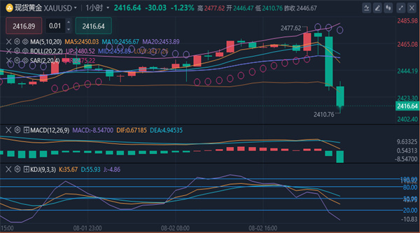 【黄金技术面分析】:非农数据利多,黄金价格突破周内高点2468到达2477后无力上行,截止发文金价自非农创造的高点开始回落,这种利好出尽后没有顺势上破历史高点,那么后市也就是下周不能盲目的看多了,反而是需要关注地缘冲突的影响。简而言之,利率决议与非农数据靴子落地,金价涨势告一段落,认为可在历史高位之下再度布局空单看跌。