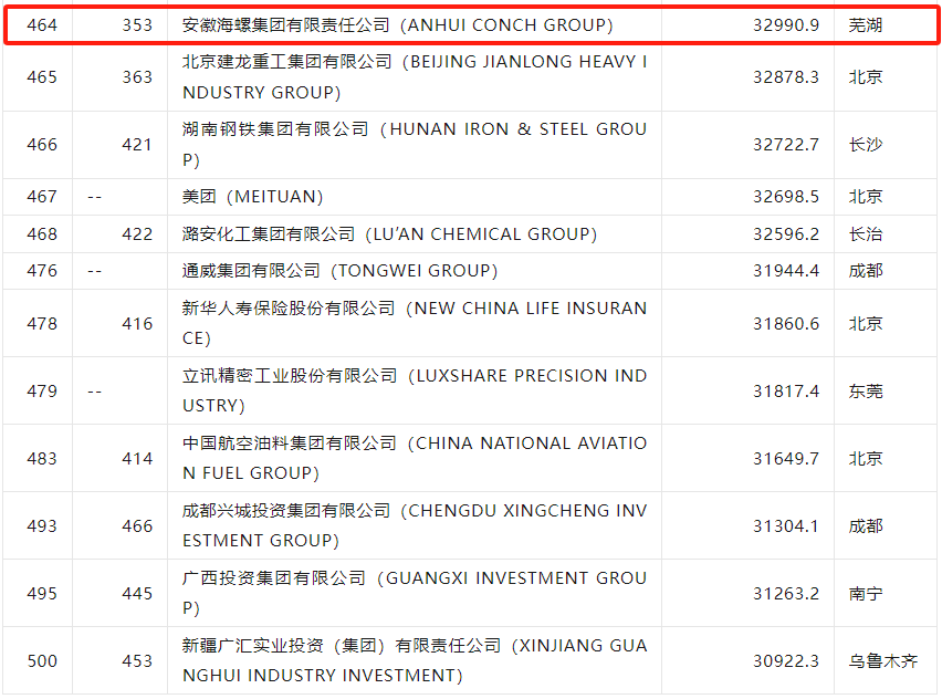 实际上,海螺集团的经营指标一直十分亮眼。在2023年《财富》世界500强榜单中,海螺集团以32990.9百万美元营业收入,位列‌世界500强第464位。这也是海螺集团自2019年首次进入世界500强来,连续第5年入选,海螺创造的彪炳史册成就无以取代。在2024《财富》中国500强的排位中,海螺取得了第135位的优异成绩。