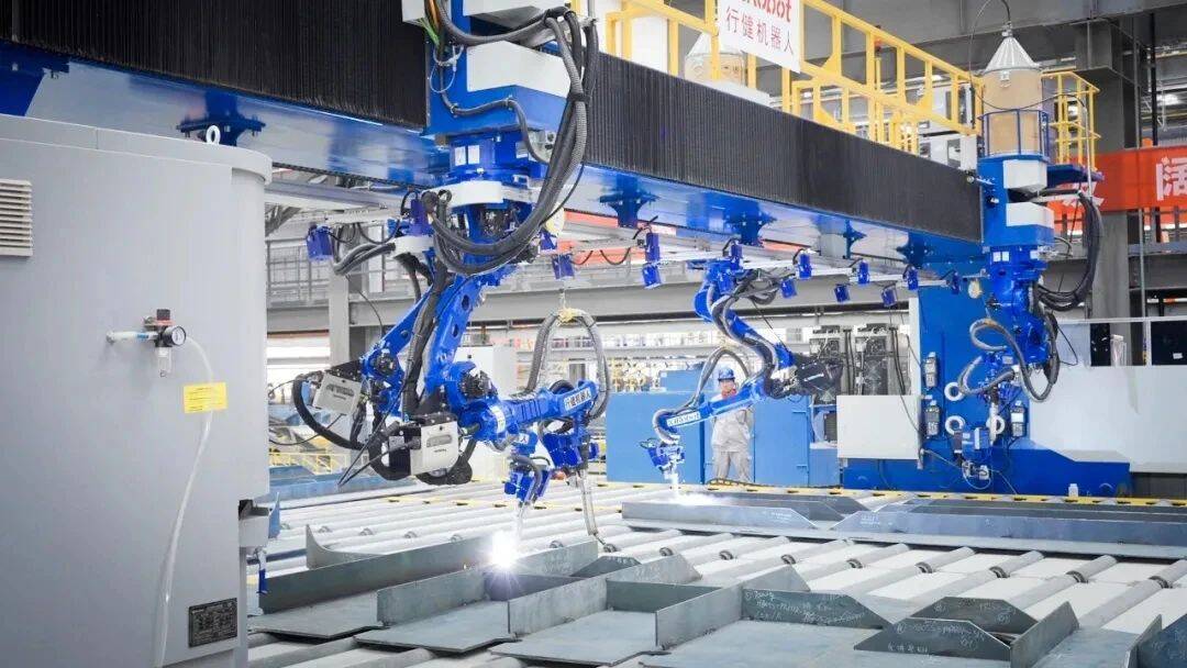 该基地拥有8条全自动化生产线,以及行业内领先的智能切割下料车间、智能部件装焊车间,在喷印、焊接、下料、分拣、驳运等生产流程实现人机高度协同,整体节约人工约40%,车间自动化率可达80%。随着基地的投产,拥有百年造船史的安徽造船企业,掀开了“由江向海”的新篇章。