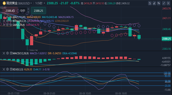 【黄金消息面分析】:北京时间2024年8月6日,黄金市场经历了一段剧烈的波动期,现货金价在连续的交易日中显示出了其作为避险资产的吸引力。尽管全球经济的不确定性和金融市场的动荡为黄金带来了支撑,但金价在达到2410美元/盎司的关键水平后,似乎进入了一个短暂的稳定期。