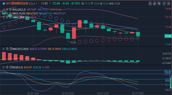 【原油消息面分析】:周三(8月7日)亚市早盘,国际油价低位徘徊,美原油目前交投于72.93美元/桶附近。周二油价延续疲软走势,未能远离周一触及的近半年低位,尽管金融市场从近期的低迷中有所恢复,但EIA月报下调价格预期,而且伊朗在报复或克制之间纠结,地缘局势担忧情绪有所缓解,不过利比亚产量下降仍给油价提供一些支撑。