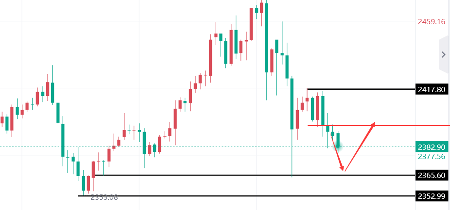 具体来看,黄金价格在周一从2364.30一线强劲反弹至周二高点2418.30附近后,迅速回落至2382下方。这一波反弹和回撤的过程,充分展示了市场多空力量的激烈对抗。对于今日的市场走势,我们需要密切关注几个关键点:一是2418一线形成的压制作用;二是下方趋势线在2375附近的支撑情况;三是周一低点2364.30一线的稳健性。