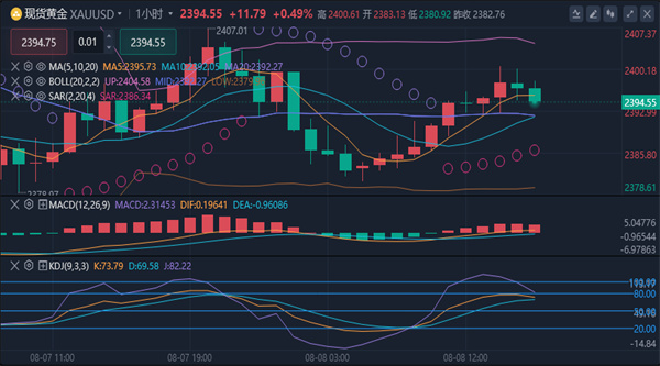 【黄金消息面分析】:北京时间周四(8月8日),黄金再度回到2400关口下方,日内涨幅收窄至13美元左右。此前金价快速上升,突破2400美元/盎司的重要心理关口。