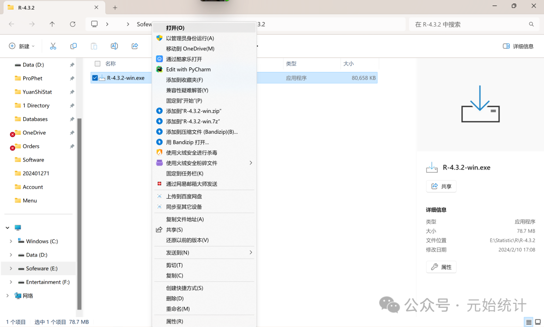 4 打开安装路径文件夹,运行【R-4.3.2-win】
