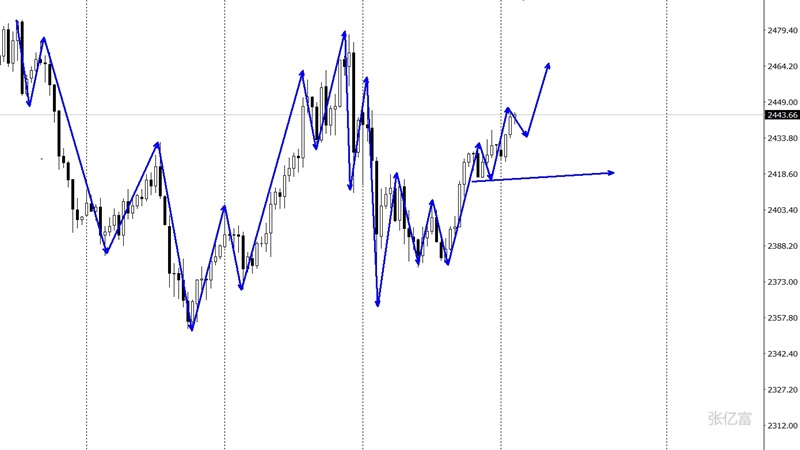 昨日黄金市场早盘开盘在2428.8美元/盎司,日线最低给到了2423.2美元/盎司,后行情强势拉升,日线最高触及到了2473.2美元/盎司,后行情整理,日线最终收线在了2471.9美元/盎司,后行情以一根下影线很长的大阳线收线,而这样的形态收尾后今日的行情有看多需求。黄金四小时级别上看,K线收得饱满,结构还是比较强势,不过再次逼近到此前高点2480附近,看亚盘的强弱延续。若能冲破新高,短线还是会延续强势行情,只是节奏伴随一新高一回头的震荡走法。综合以上分析,张亿富认为:黄金强势拉升,金价再次上移新台阶,今日关注多头延续,操作上考虑回撤布局多单为主,空单等下破后考虑,上方关注2483-2490美元阻力,下方关注2450-2439美元支撑。
