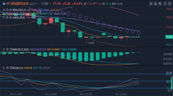 【原油技术面分析】:原油价格近期走势缓慢,涨跌幅度都不算大,日线级别油价在79.8一带形成重要阻力位,后市能否延续突破,将影响后市油价走势。4小时附图指标MACD快慢线死叉,绿色量能柱放量,KDJ随机指标同步死叉下行,但是RSI相对强弱指标已经处于超卖区域。布林带上下轨区间79.4-78.2盘整运行,向上破位看4小时布林带上轨80.4,向下破位看4小时下轨76.1。支持方面留意78,其次看77和76整数关口支撑节点。整体来看原油价格多次回落都快速拉伸,就是表明市场买盘强劲。原油处于多头调整浪中,强弱一线在76.0一带,后市操作上以回调低多为主,反弹高空为辅,上方短期关注78.5-79.0一线阻力,下方短期关注76.0-75.5一线支撑。